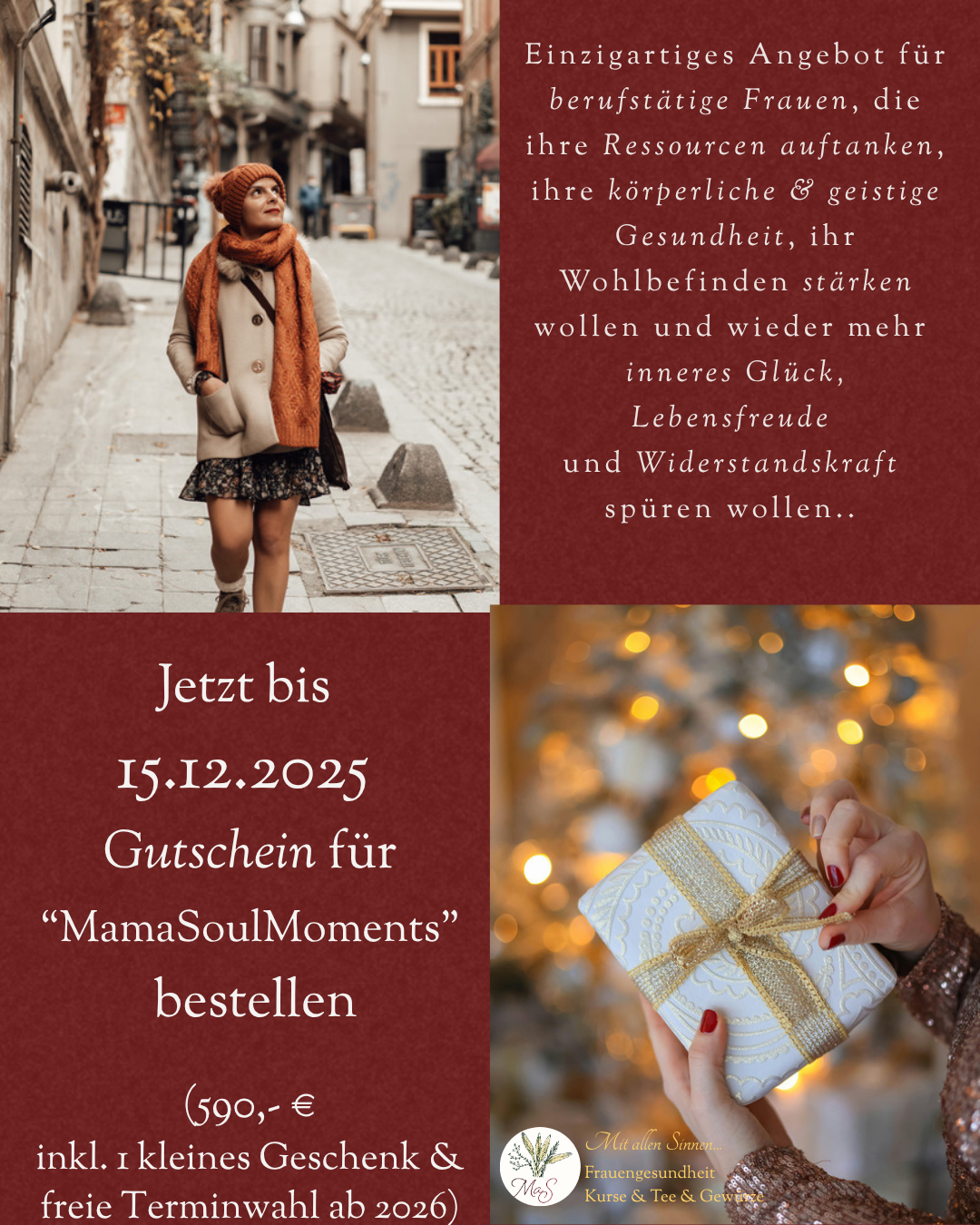 Bis kurz vor Weihnachten könnt ihr "MamaSoulMoments" als Gutschein verschenken.